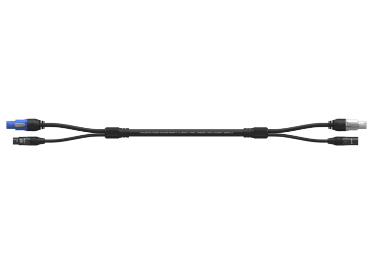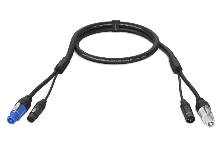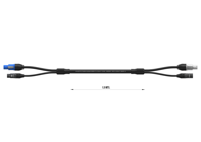 El PC-XLR-150 es un cable híbrido profesional diseñado para optimizar instalaciones técnicas combinando alimentación y señal en una sola solución. Con conectores PowerCON (entrada azul y salida gris) y una longitud de 1,5 metros, permite reducir el cableado y agilizar montajes en entornos de audio e iluminación. Fabricado con conductor de 3 x 2,5 mm², garantiza una transmisión de energía estable y segura. Además, cuenta con certificaciones CE y RoHS y protección IP44, lo que lo hace apto para uso en entornos profesionales exigentes.