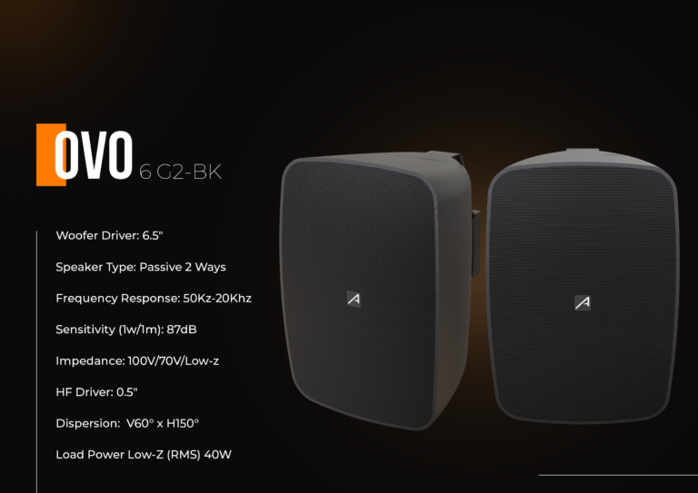 The Audibax Pro Fiji 6 Black is a larger, powerful speaker ideal for both indoor and outdoor use, with an IP65 certification that ensures full resistance to dust, water, and demanding weather conditions while delivering flawless performance. Featuring a sleek black finish and modern lines, its compact format with a 6-inch woofer provides a balanced visual presence and superior sound quality, combining a 6-inch woofer with a 1-inch silk dome tweeter to achieve 87 dB sensitivity and up to 100W of power, making it perfect for both background music and applications requiring more impact. Built with durable ABS materials, the speaker is designed for long-lasting performance with minimal maintenance, and its included wall-mount system allows quick and easy installation, making it adaptable to terraces, shops, restaurants, gyms, or any space requiring high-quality, reliable audio.