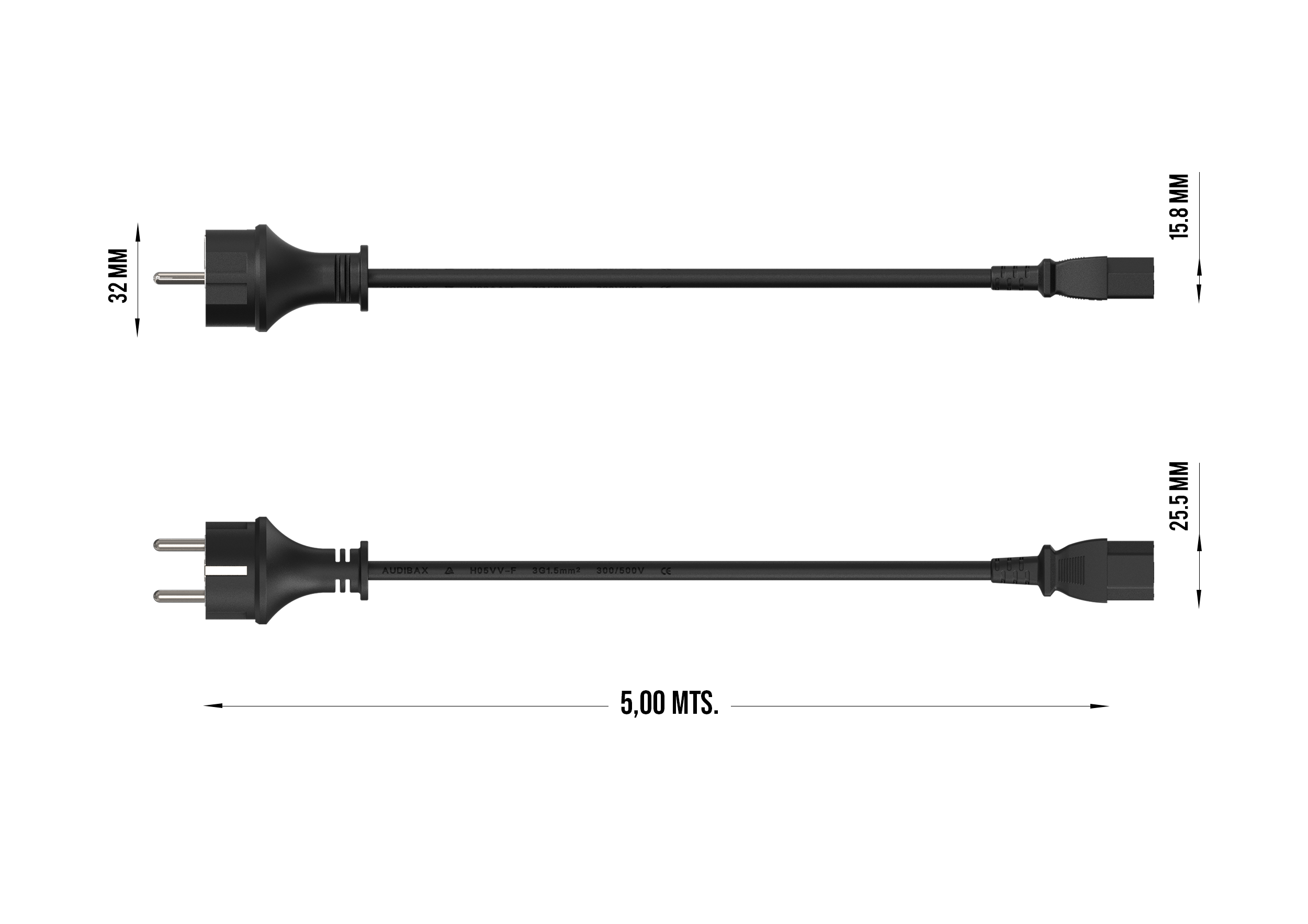 Audibax PC500-15 Power Cable is a 5 m power cable designed to safely and reliably connect electrical devices and power strips.