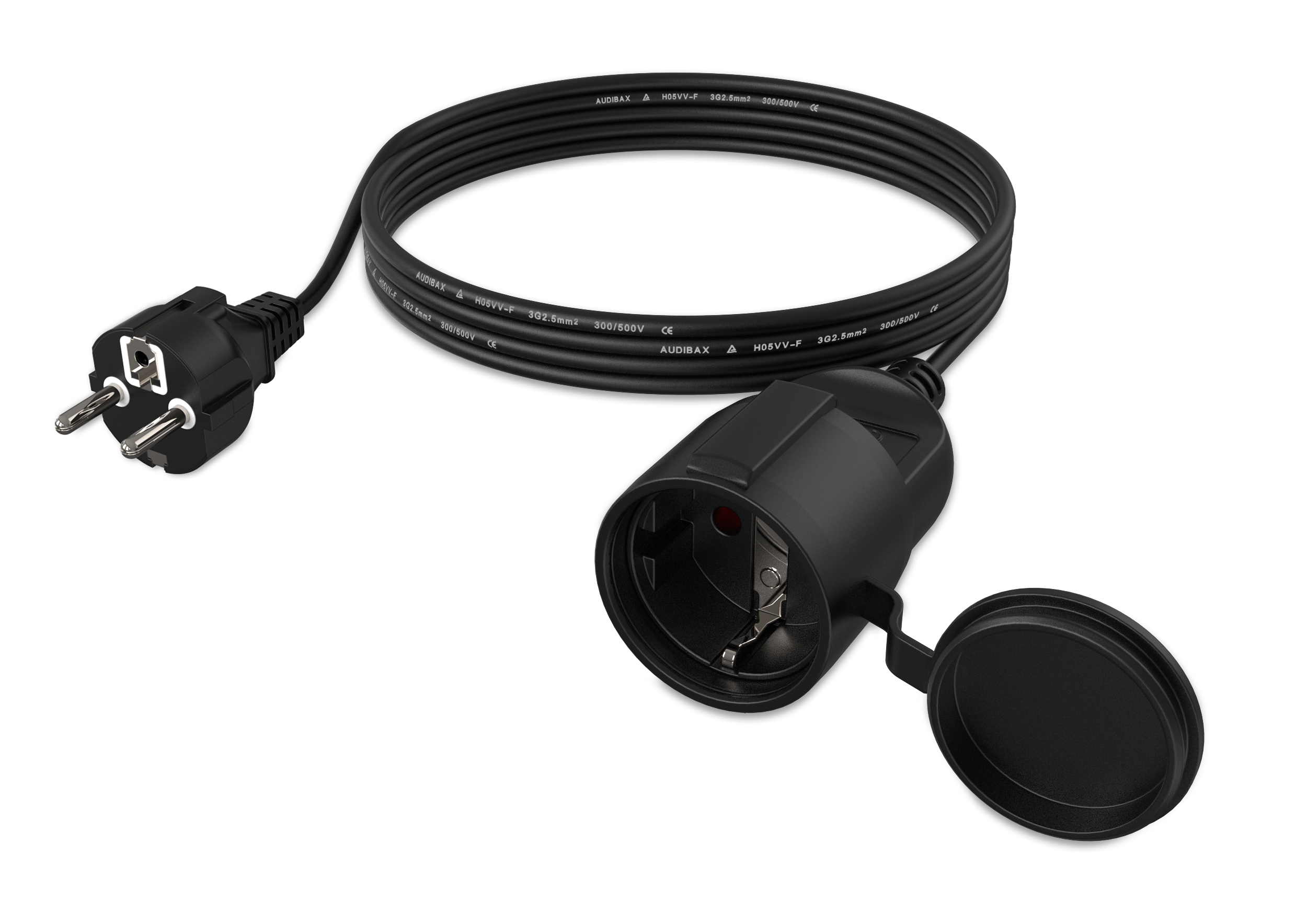 Audibax PCE500-25 Power Extension Cord is a 5 m extension cable designed to safely and reliably extend the connection of your electrical devices and power strips.